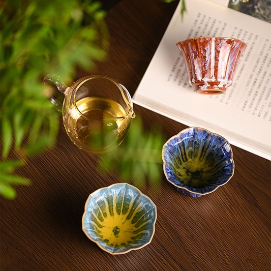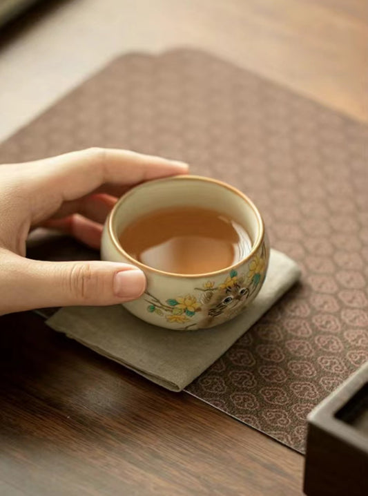 High-grade Glazed Porcelain 'Rich and Honored' Five Tea Cup Set Gift Box