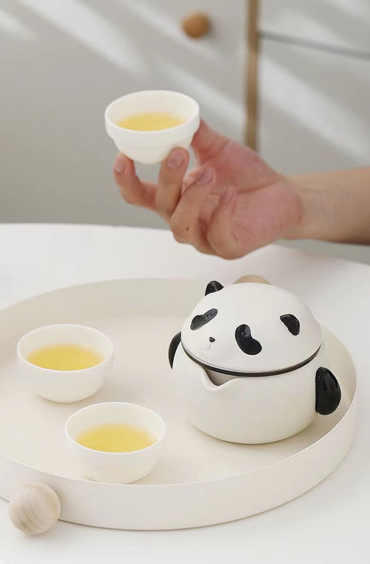 Panda Ceramic Tea Set One Pot Three Cups Outdoor Camping