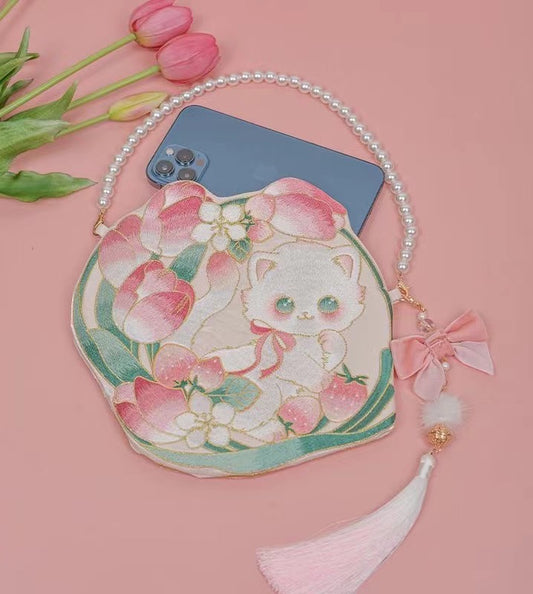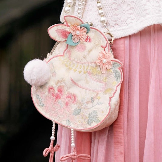 Rabbit & Laurel Flowers Kawaii Embroidered Bag
