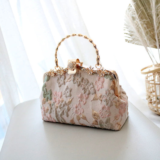 Vintage Floral Pattern Embroidery Jewel-Encrusted Hand Bag