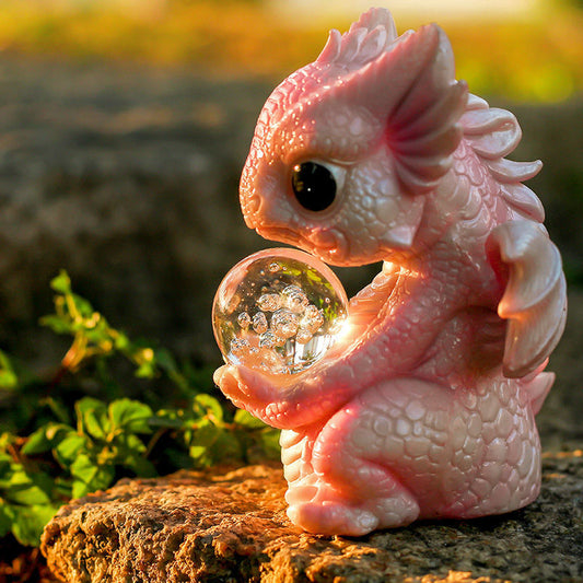Dragon Baby Statue with Colorful Bubble Crystal Ball