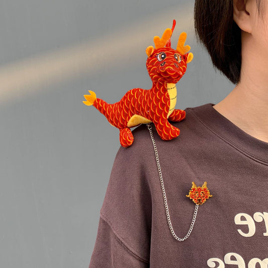 New Year Plush Dragon Brooch + Shoulder Accessories