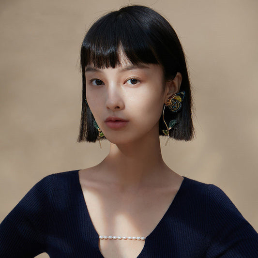 Embroidery Butterfly Designer Dangle Earrings 925 Sterling Silver
