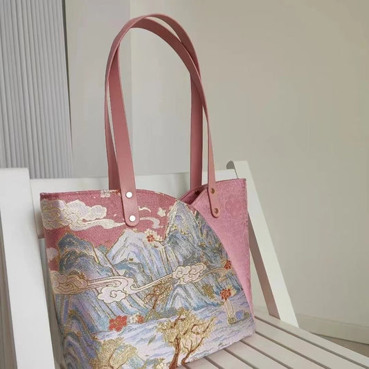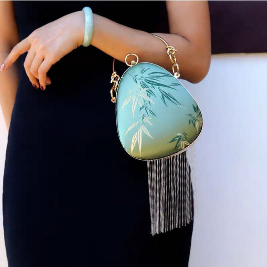 Vintage design mini water drop-shaped Silky Bag with Embroidery Bamboo Pantern