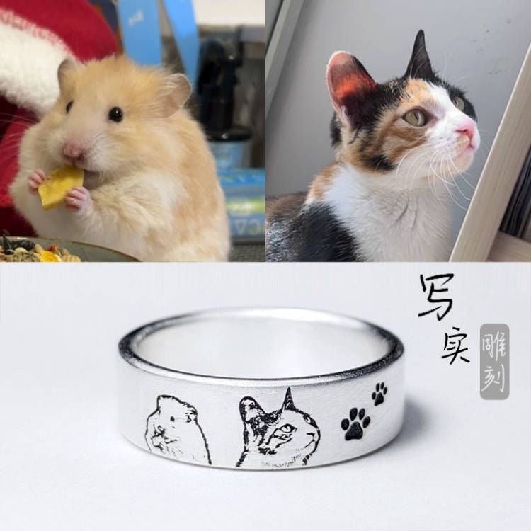 [Personalized Pet Portrait Ring] Upload your beloved pet photo and turn it into a unique sketch-style portrait ring. The photo can be a cat, a dog, any animal all be OK! Each ring is specially designed and handmade. Surprise your loved one with this special and elegant engraving portrait photo ring gift.